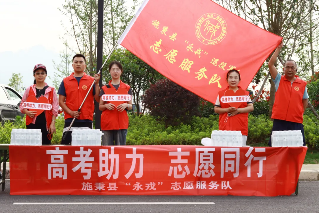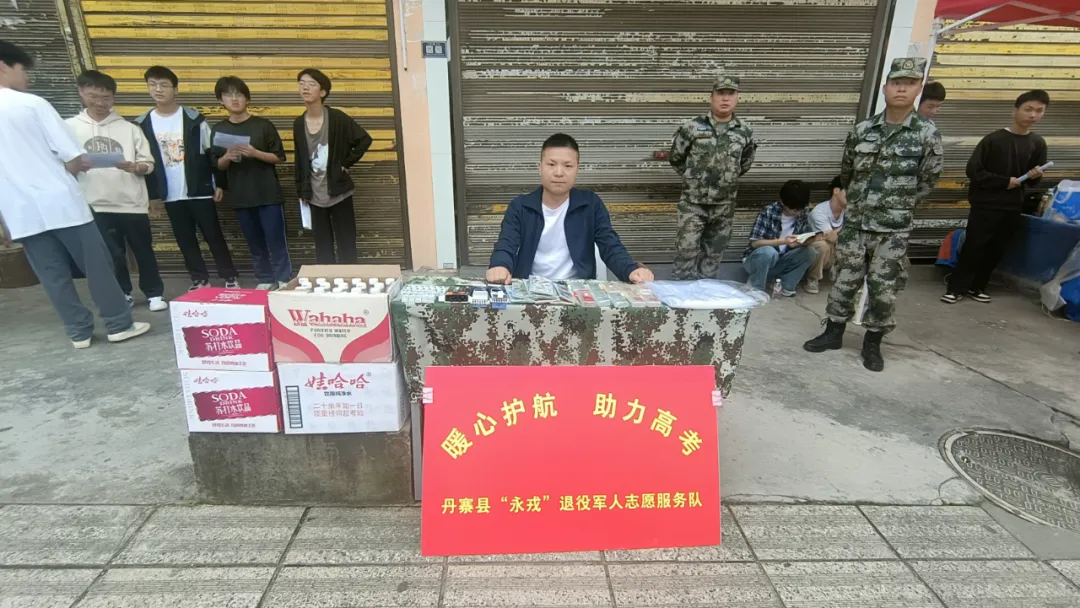 台江县“永戎”退役军人志愿服务队弘扬退役军人“退伍不褪色、奉献显担当”的精神,在高考期间积极开展护航行动,为考生及家长提供暖心服务,全力营造安全、有序的考试环境。在考点周边设立服务点,协助工作人员引导考生有序进入考场。免费为考生及家长提供饮用水,并且积极协助交警开展交通疏导,守护考场周边安全。